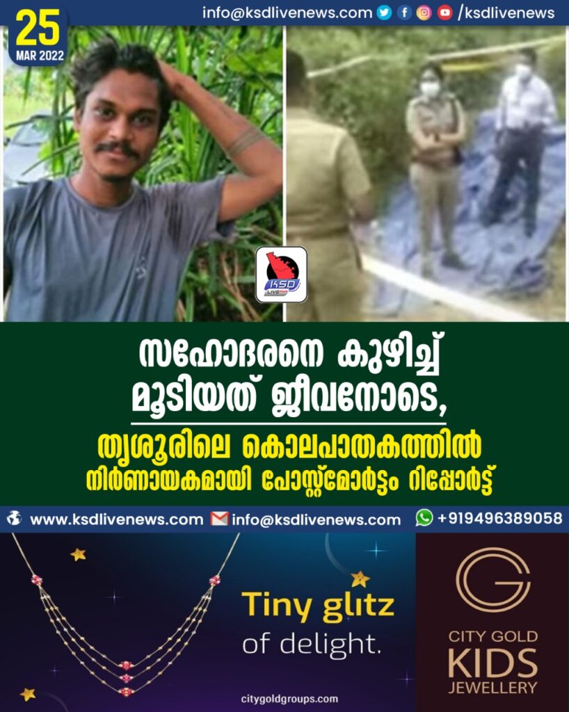 സഹോദരനെ കുഴിച്ച് മൂടിയത് ജീവനോടെ, തൃശൂരിലെ കൊലപാതകത്തില് നിര്ണായകമായി പോസ്റ്റ്മോര്ട്ടം റിപ്പോര്ട്ട്