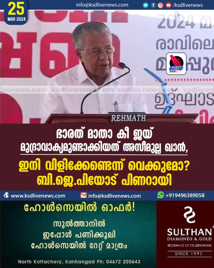 ഭാരത് മാതാ കീ ജയ് മുദ്രാവാക്യമുണ്ടാക്കിയത് അസീമുല്ല ഖാൻ, ഇനി വിളി‌ക്കേണ്ടെന്ന് വെക്കുമോ? ബിജെപിയോട് പിണറായി