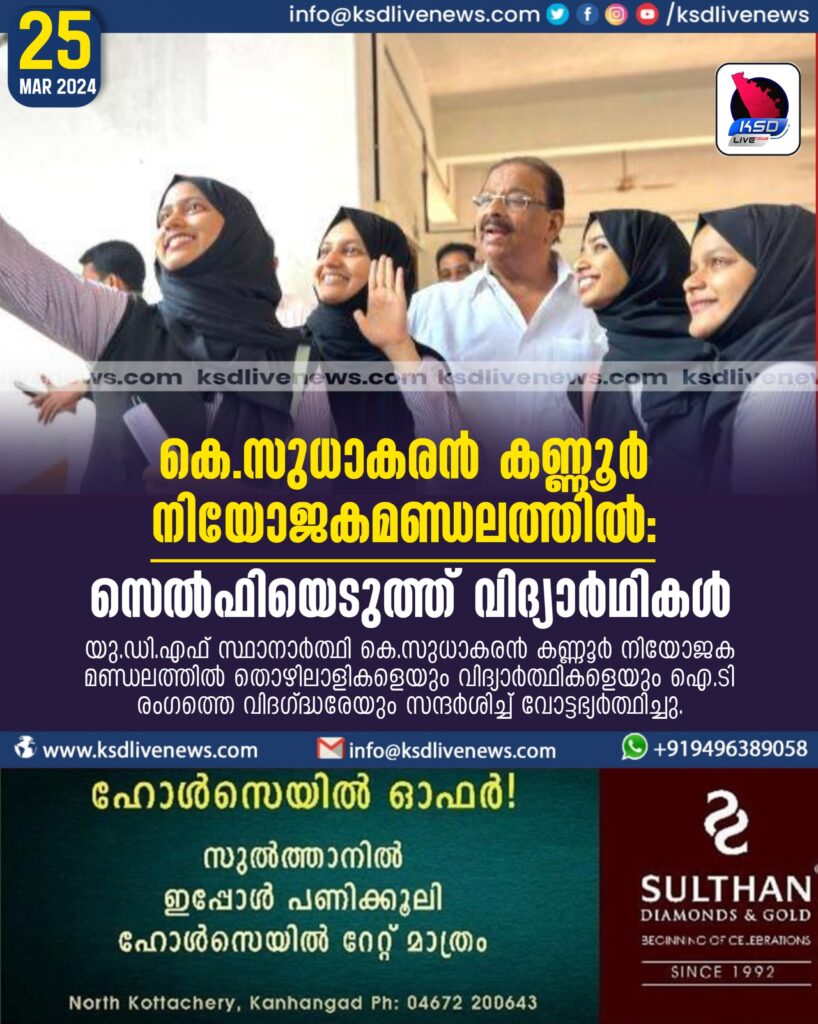കെ.സുധാകരൻ കണ്ണൂര്‍ നിയോജകമണ്ഡലത്തില്‍; സെൽഫിയെടുത്ത് വിദ്യാർഥികൾ