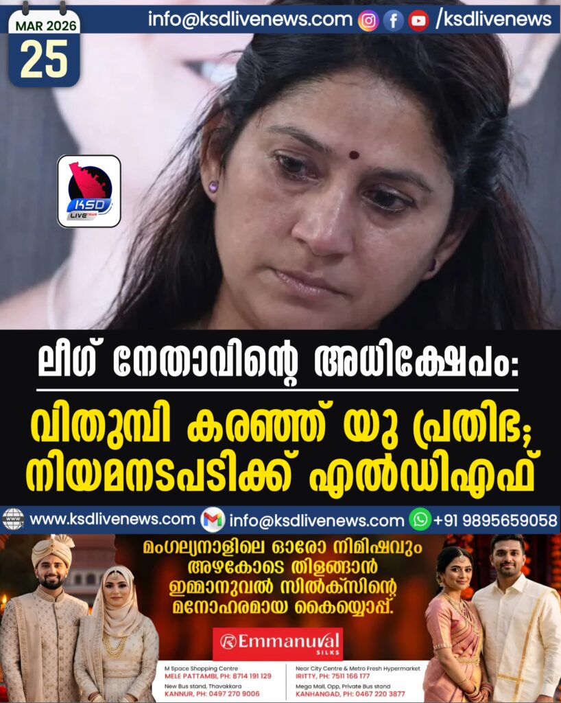 ലീഗ് നേതാവിന്റെ അധിക്ഷേപം; വിതുമ്പി കരഞ്ഞ് യു പ്രതിഭ, നിയമനടപടിക്ക് എൽഡിഎഫ്