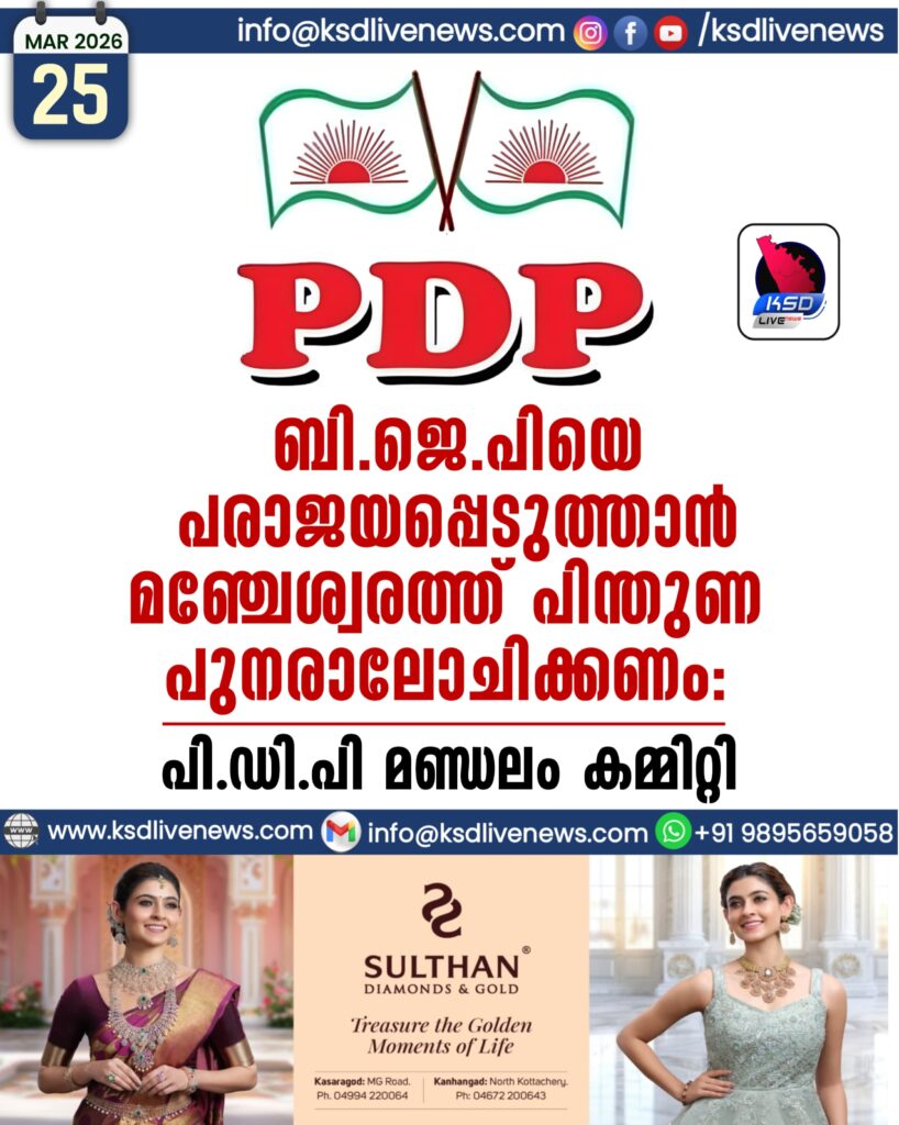 മഞ്ചേശ്വരം: ആസന്നമായ നിയമസഭാ തിരഞ്ഞെടുപ്പിൽ പിഡിപിയുടെ പിന്തുണ സംസ്ഥാനതലത്തിൽ 140 മണ്ഡലങ്ങളിലും ഇടതുപക്ഷത്തിനാണെങ്കിലും, മഞ്ചേശ്വരം നിയമസഭാ മണ്ഡലത്തിൽ ബിജെപിയെ പരാജയപ്പെടുത്തുന്നതിനായി പ്രസ്തുത പിന്തുണ പുനരാലോചിക്കണമെന്ന് പിഡിപി മഞ്ചേശ്വരം മണ്ഡലം കമ്മിറ്റി സംസ്ഥാന കമ്മിറ്റിയോട് ആവശ്യപ്പെട്ടു.