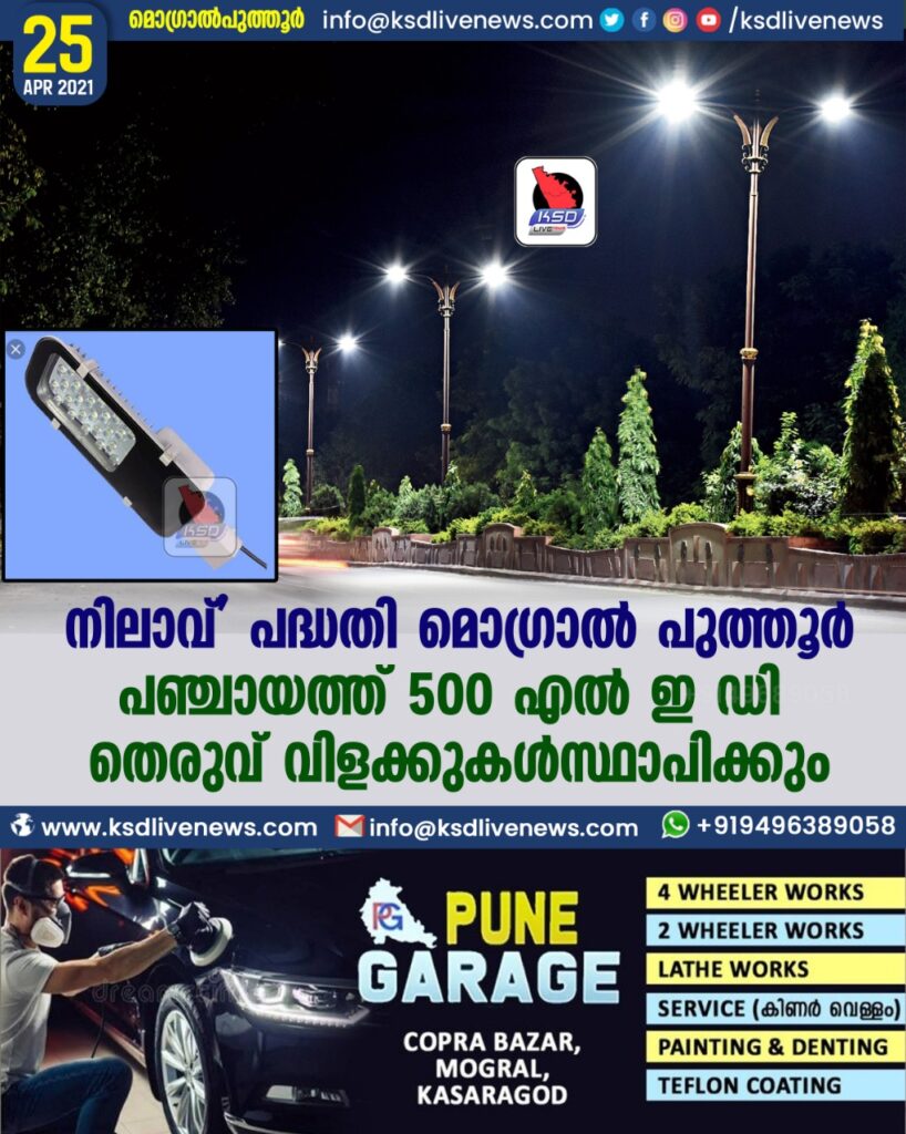 നിലാവ്’ പദ്ധതി മൊഗ്രാൽ പുത്തൂർ പഞ്ചായത്ത് 500 എൽ ഇ ഡി തെരുവ് വിളക്കുകൾസ്ഥാപിക്കും.