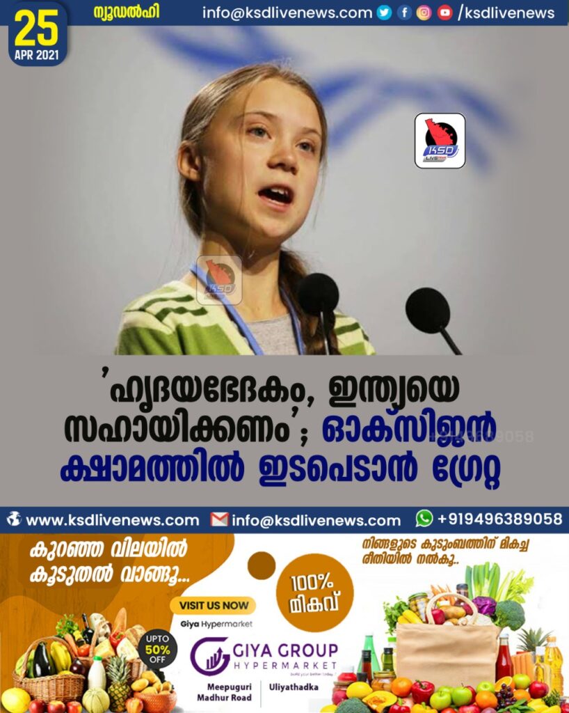 ‘ഹൃദയഭേദകം, ഇന്ത്യയെ സഹായിക്കണം’ ഓക്സിജൻ ക്ഷാമത്തിൽ ഇടപെടാൻ ഗ്രേറ്റ