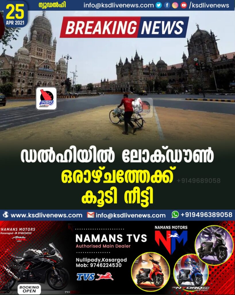 ഡല്ഹിയില് ലോക്ഡൗണ് ഒരാഴ്ചത്തേക്ക് കൂടി നീട്ടി