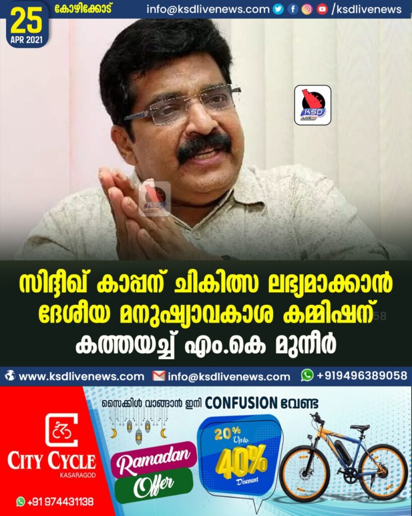 സിദ്ദീഖ് കാപ്പന് ചികിത്സലഭ്യമാക്കാന് ദേശീയ മനുഷ്യാവകാശ കമ്മിഷന് കത്തയച്ച് എം.കെ മുനീര്