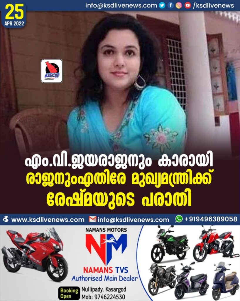 എം.വി.ജയരാജനും കാരായി രാജനുംഎതിരേ മുഖ്യമന്ത്രിക്ക് രേഷ്മയുടെ പരാതി