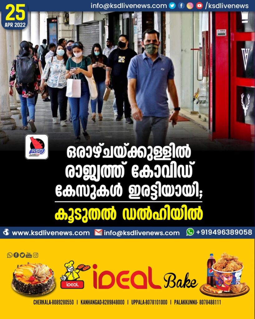 ഒരാഴ്ചയ്ക്കുള്ളില്‍ രാജ്യത്ത്‌ കോവിഡ് കേസുകള്‍ ഇരട്ടിയായി; കൂടുതല്‍ ഡല്‍ഹിയില്‍