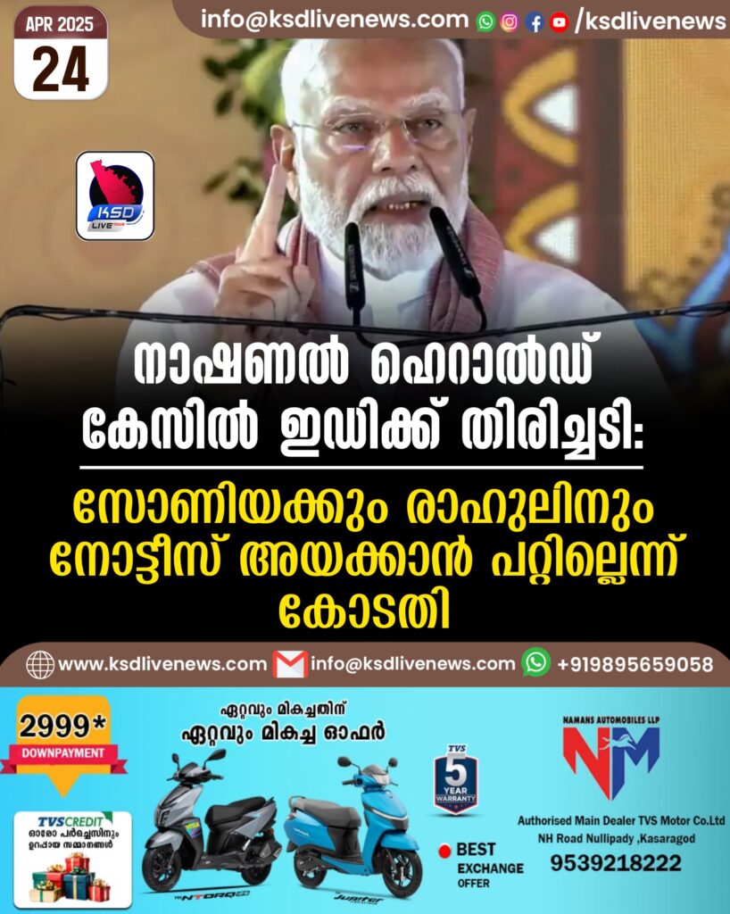 നാഷണൽ ഹെറാൽഡ് കേസിൽ ഇഡിക്ക് തിരിച്ചടി: സോണിയക്കും രാഹുലിനും നോട്ടീസ് അയക്കാൻ പറ്റില്ലെന്ന് കോടതി
