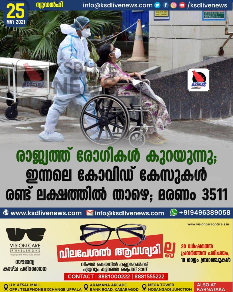 രാജ്യത്ത് രോഗികള്‍ കുറയുന്നു; ഇന്നലെ കോവിഡ് കേസുകൾ രണ്ട് ലക്ഷത്തില്‍ താഴെ; മരണം 3511