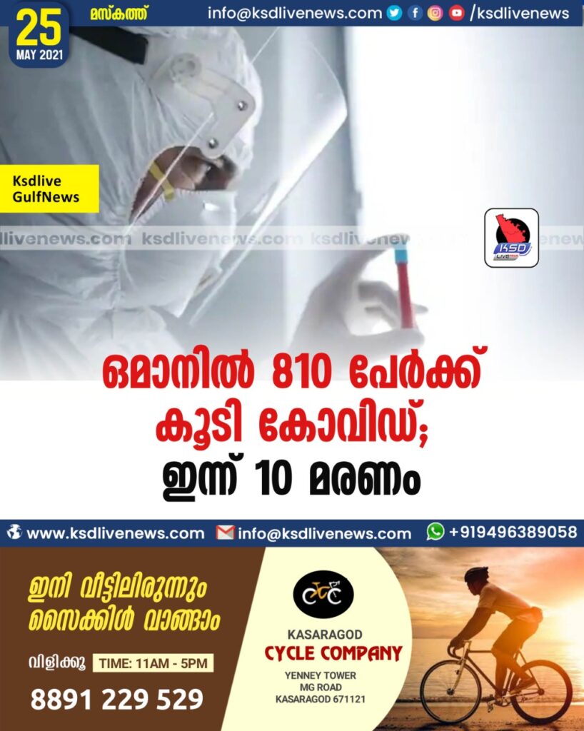 ഒമാനില്‍ 810 പേര്‍ക്ക് കൂടി കൊവിഡ്; ഇന്ന് 10 മരണം
