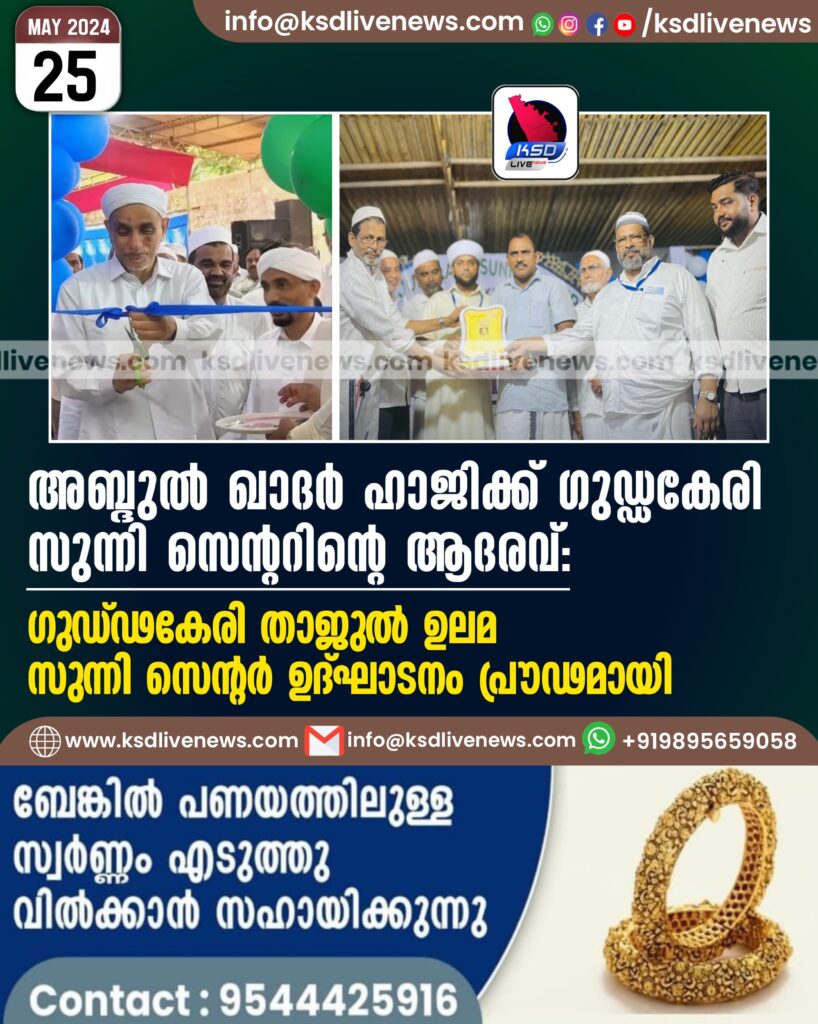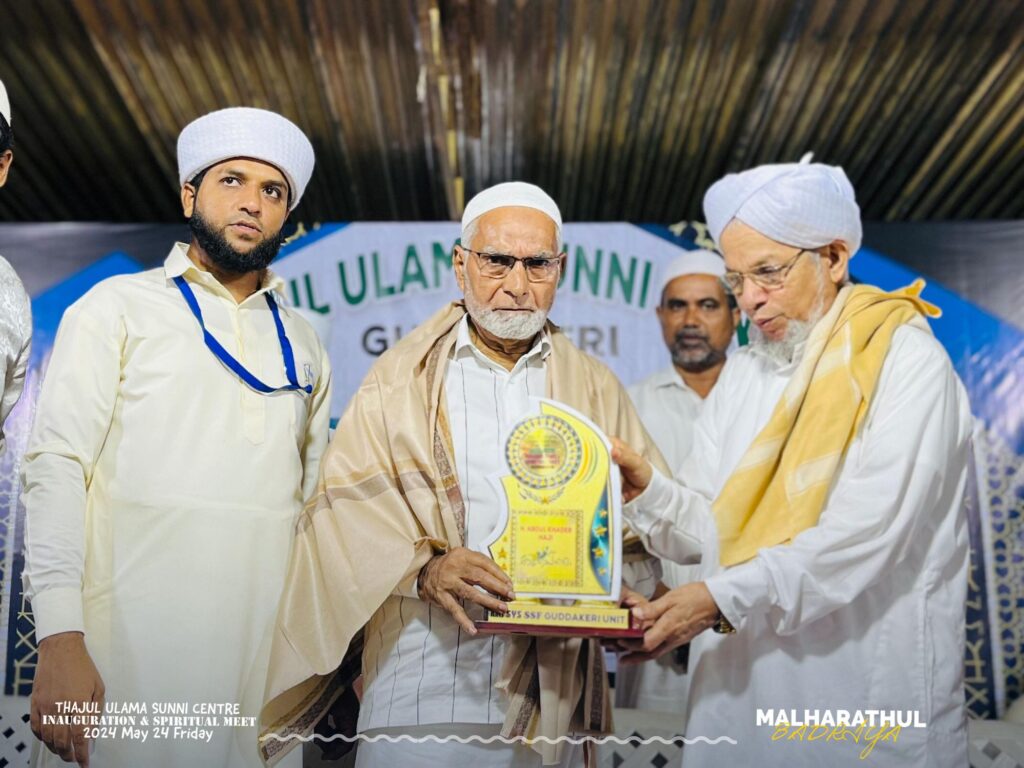 അബ്ദുൽ ഖാദർ ഹാജിക്ക് ഗുഡ്ഡകേരി സുന്നി സെന്ററിന്റെ ആദരവ്: ഗുഡ്ഢകേരി താജുൽ ഉലമ സുന്നി സെന്റർ ഉദ്ഘാടനം പ്രൗഢമായി