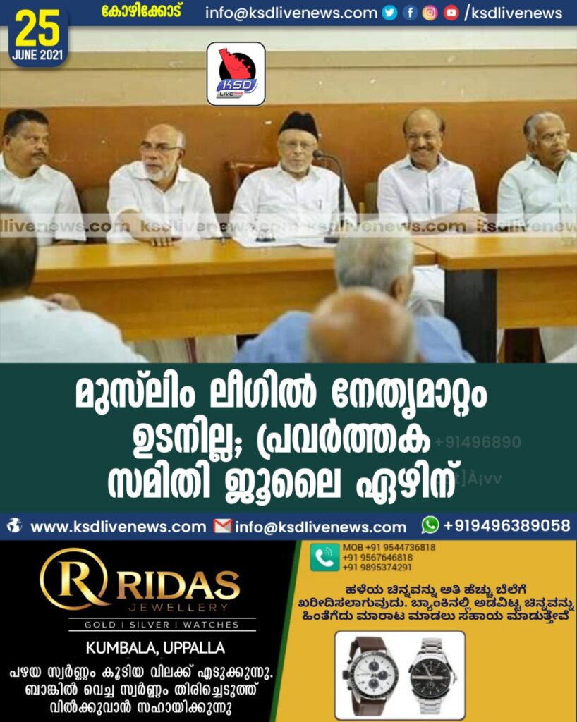 മുസ്​ലിം ലീഗില്‍ നേതൃമാറ്റം ഉടനില്ല; പ്രവര്‍ത്തക സമിതി ജൂലൈ ഏഴിന്​