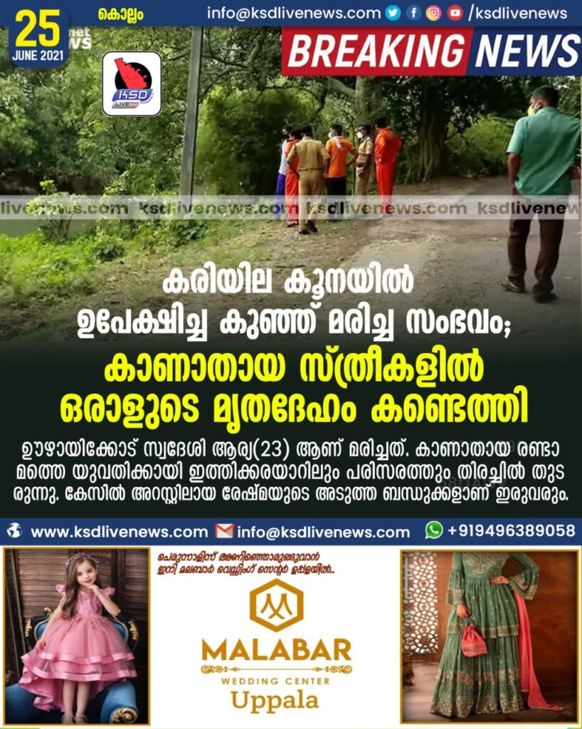 കരിയില കൂനയില് ഉപേക്ഷിച്ച കുഞ്ഞ് മരിച്ച സംഭവം; കാണാതായ സ്ത്രീകളിലൊരാളുടെ മൃതദേഹം കണ്ടെത്തി