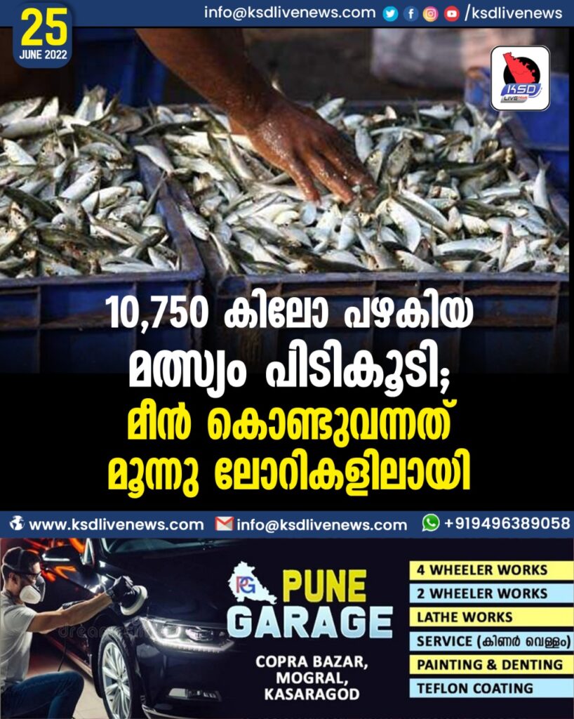 10,750 കിലോ പഴകിയ മത്സ്യം പിടികൂടി; മീന് കൊണ്ടുവന്നത് മൂന്നുലോറികളിലായി