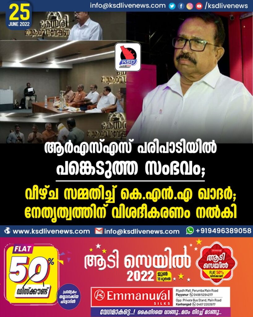 ആര്എസ്എസ് പരിപാടിയില് പങ്കെടുത്ത സംഭവം; വീഴ്ച സമ്മതിച്ച് കെ എന് എ ഖാദര്, നേതൃത്വത്തിന് വിശദീകരണം നല്കി