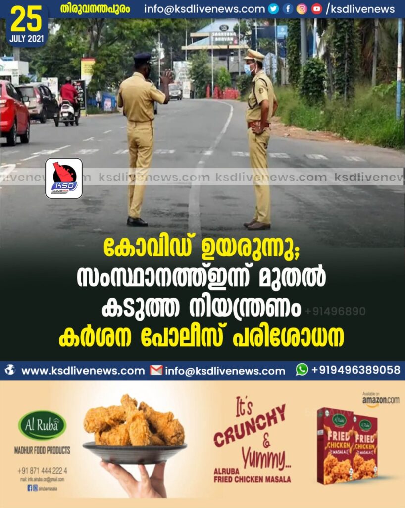 കോവിഡ് ഉയരുന്നു, സംസ്ഥാനത്ത് ഇന്ന് മുതൽ കടുത്ത നിയന്ത്രണം, കർശന പോലീസ് പരിശോധന