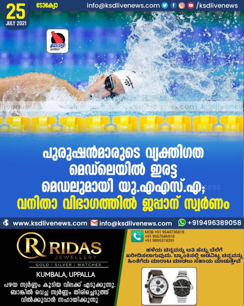 പുരുഷന്മാരുടെ വ്യക്തിഗത മെഡ്ലെയില് ഇരട്ട മെഡലുമായി യു.എഎസ്.എ, വനിതാ വിഭാഗത്തില് ജപ്പാന് സ്വര്ണം