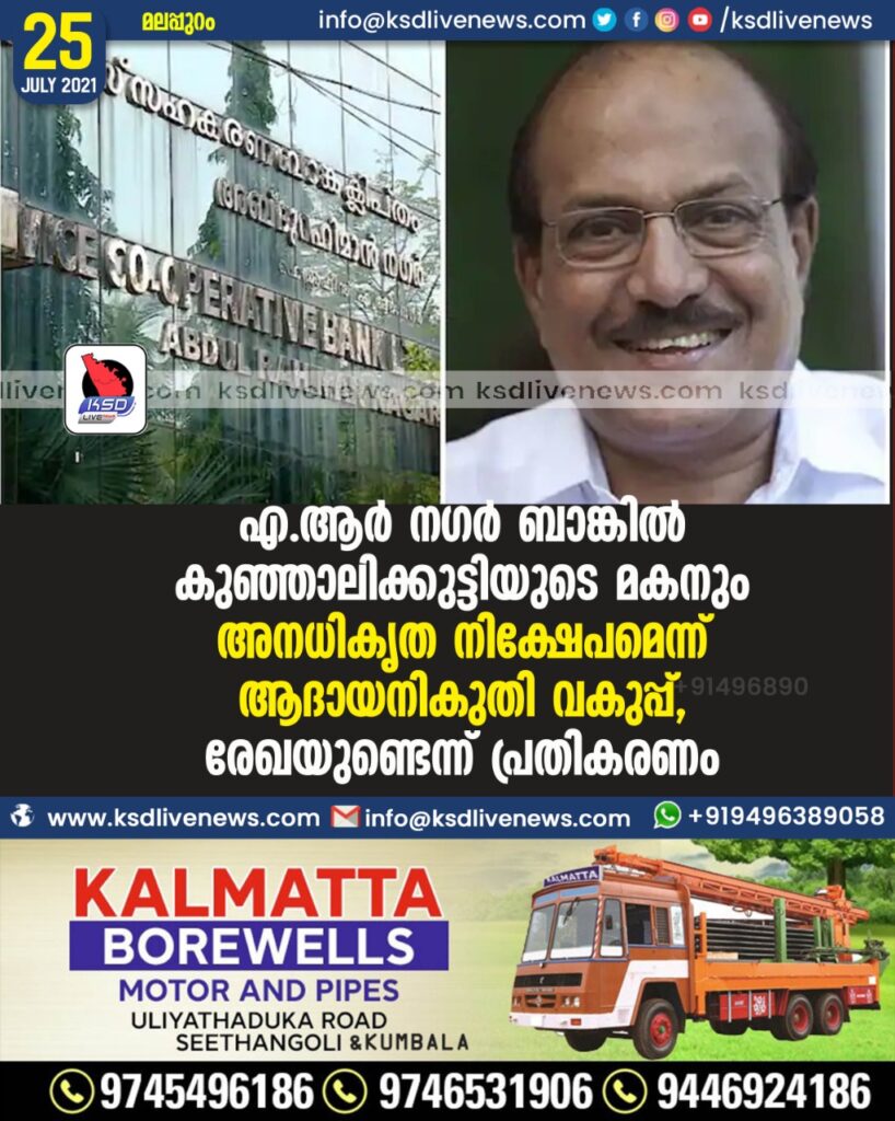 എആർ നഗർ ബാങ്കിൽ കുഞ്ഞാലിക്കുട്ടിയുടെ മകനും അനധികൃത നിക്ഷേപമെന്ന് ആദായനികുതി വകുപ്പ്, രേഖയുണ്ടെന്ന് പ്രതികരണം