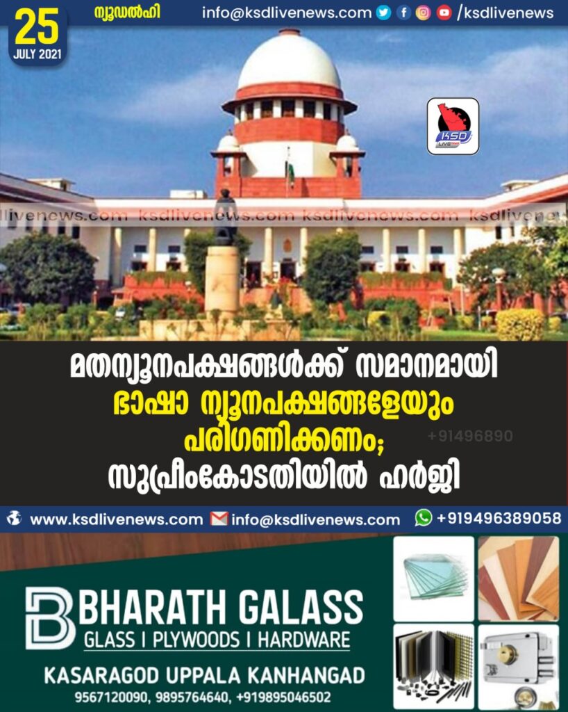 മതന്യൂനപക്ഷങ്ങൾക്ക് സമാനമായി ഭാഷാ ന്യൂനപക്ഷങ്ങളേയും പരിഗണിക്കണം; സുപ്രീംകോടതിയില് ഹര്ജി
