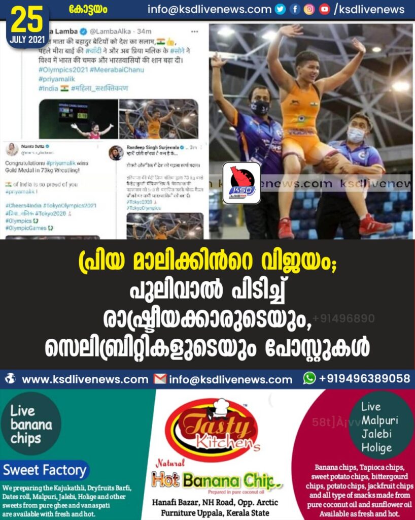 ദില്ലി: ഇന്ത്യന് വനിത ഗുസ്തിതാരം പ്രിയ മാലിക്ക് വേള്ഡ് കേഡറ്റ് ഗുസ്തി ചാമ്പ്യന്ഷിപ്പില് സ്വര്ണ്ണം നേടിയിരുന്നു. മീരഭായി ചാനു ടോക്കിയോ ഒളിംപിക്സില് വെള്ളി നേടിയതിന് പിന്നാലെയാണ് ഈ വാര്ത്തവന്നത്. എന്നാല് പലരും ഈ വാര്ത്തയില് കുടുങ്ങി അബന്ധം കാണിച്ചെന്നാണ് സോഷ്യല് മീഡിയ ചര്ച്ച. അതില് രാഷ്ട്രീയക്കാരും, സെലബ്രൈറ്റികളും എല്ലാം പെടും. രാഷ്ട്രീയ നേതാക്കളായ അല്ക്ക ലാംപ, രാംദീപ് സിംഗ് സുര്ജേവാല, മമത ദത്ത് എന്നിവര് പ്രിയ മാലിക്കിന് ടോക്കിയോയില് സ്വര്ണ്ണം എന്ന് പറഞ്ഞിട്ട ഇട്ട പോസ്റ്റുകള് വൈറലായി ഏറെ വിമര്ശനവും കേട്ടു. ചില ബിജെപി അണികള് ഈ തെറ്റിദ്ധാരണ പരത്തുന്ന പോസ്റ്റുകള് ബിജെപിയുടെ ‘ടൂള് കിറ്റ്’ പദ്ധതിയാണോ എന്ന് പോലും ചോദിച്ചു. കേരളത്തില് പട്ടാമ്പി എംഎല്എ മുഹമ്മദ് മുഹ്സിന് ആദ്യം ടോക്കിയോയിലാണ് പ്രിയ മാലിക്ക് സ്വര്ണ്ണം നേടിയത് എന്നാണ് പോസ്റ്റ് ഇട്ടത്. പിന്നാലെ അത് തിരുത്തി. മുന്മന്ത്രി എംഎം മണി എവിടെ എന്ന് പറയാതെയാണ് ആദ്യം പ്രിയ മാലിക്കിന് സ്വര്ണ്ണം എന്ന് ഫേസ്ബുക്കില് പോസ്റ്റിട്ടത്. എന്നാല് പിന്നീട് ആശയകുഴപ്പം ഒഴിവാക്കാന് അത് തിരുത്തി ലോക ചാമ്പ്യന്ഷിപ്പ് എന്നാക്കിയിരുന്നു. സോഷ്യല് മീഡിയയിലും പലയിടത്തും ഇതേ അബദ്ധം കാണിച്ചവര് ഏറെയാണ്. ബോളിവുഡ് നടനും മോഡലുമായി മിലിന്ദ് സോമന് ആദ്യം ടോക്കിയോയില് മെഡല് എന്നാണ് പോസ്റ്റ് ഇട്ടത്, പിന്നീട് അദ്ദേഹം ഈ പോസ്റ്റ് പിന്വലിച്ചില്ലെങ്കിലും തിരുത്തായി മറ്റൊരു ട്വീറ്റ് നല്കിയിട്ടുണ്ട്. ബോളിവുഡില് നിന്നും കരീന കപൂര്, സണ്ണി ഡിയോള് അടക്കമുള്ള പ്രമുഖര് പ്രിയയുടെ വിജയത്തെ അഭിനന്ദിച്ചിട്ടുണ്ട്.