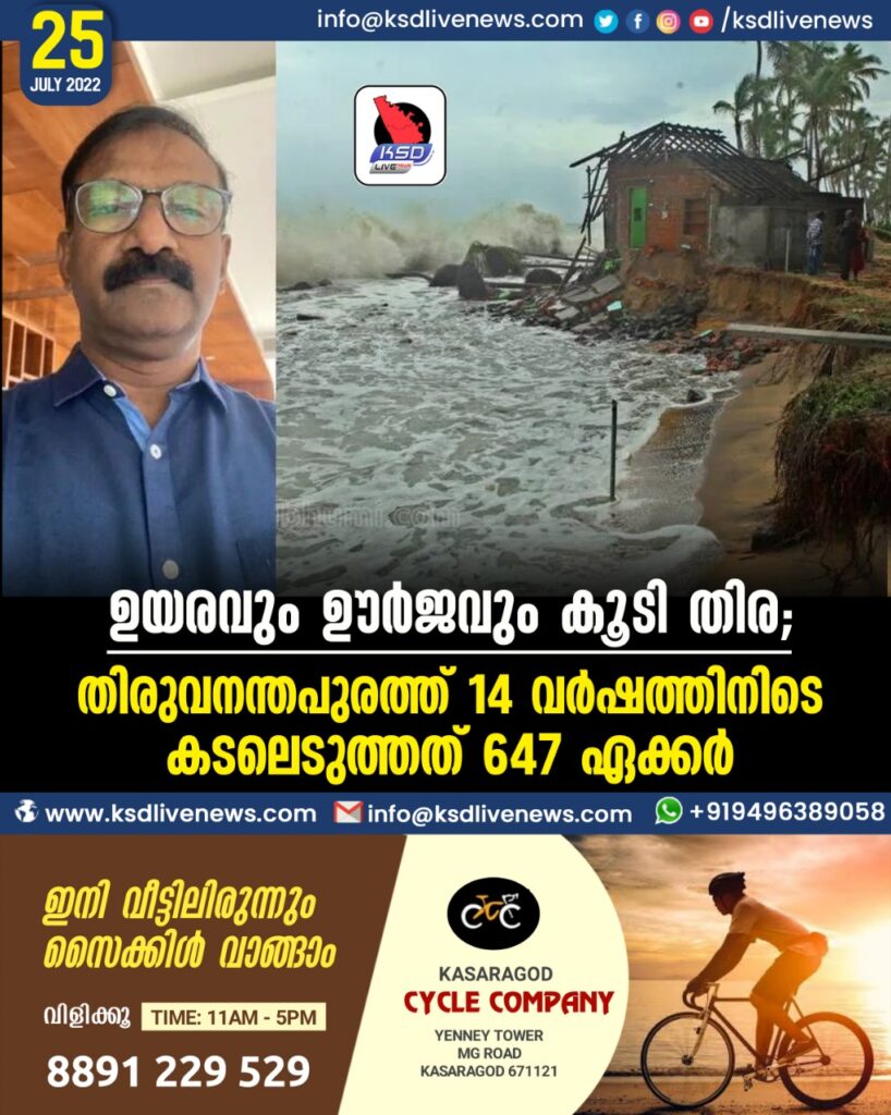 ഉയരവും ഊര്ജവും കൂടി തിര; തിരുവനന്തപുരത്ത് 14 വര്ഷത്തിനിടെ കടലെടുത്തത് 647 ഏക്കര്
