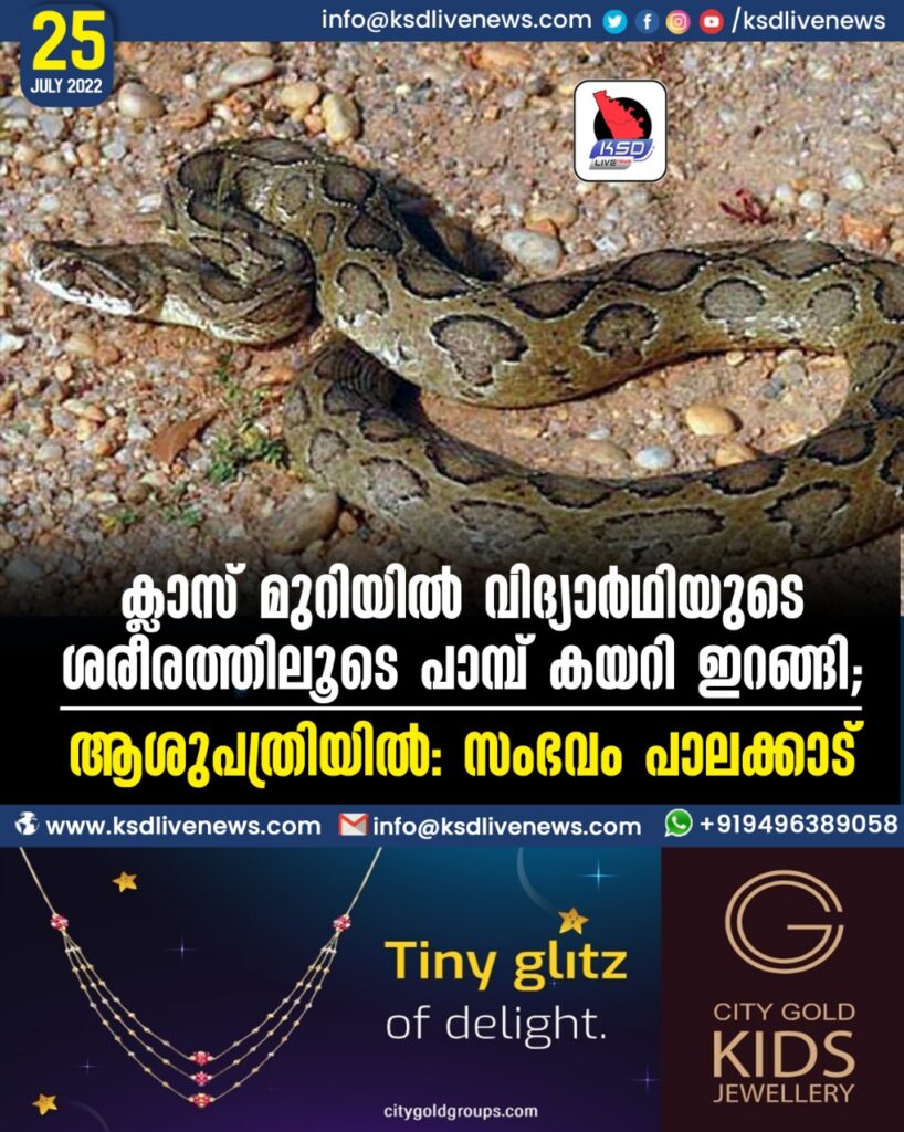 പാലക്കാട്: ക്ലാസ് മുറിയില് എത്തിയ പാമ്ബ് വിദ്യാര്ഥിയുടെ ശരീരത്തിലൂടെ കയറി ഇറങ്ങി. പാമ്ബ് കടിച്ചെന്ന സംശയത്തില് വിദ്യാര്ഥിയെ ആശുപത്രിയില് ഉടന്തന്നെ പ്രവേശിപ്പിച്ചു. പാലക്കാട് മങ്കര ഗവണ്മെന്റ് ഹയര് സെക്കന്ഡറി സ്കൂളിലാണ് സംഭവം.
