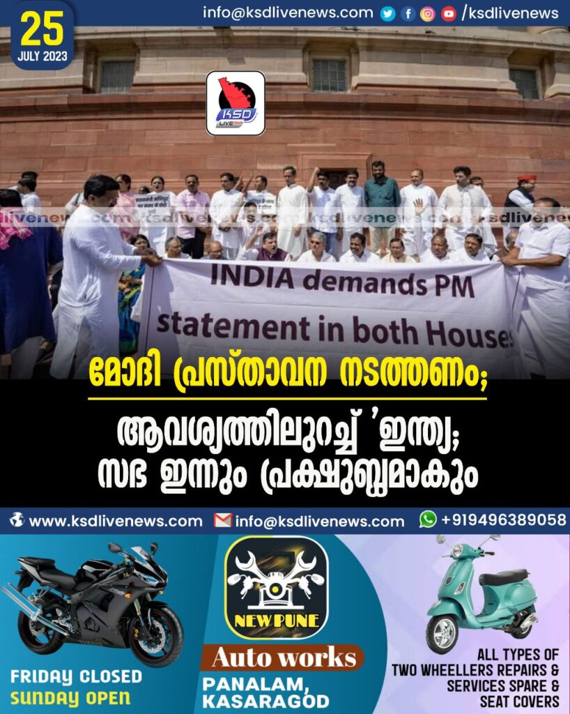മോദി പ്രസ്താവന നടത്തണം, ആവശ്യത്തിലുറച്ച്‌ ‘ഇന്ത്യ’; സഭ ഇന്നും പ്രക്ഷുബ്ധമാകും