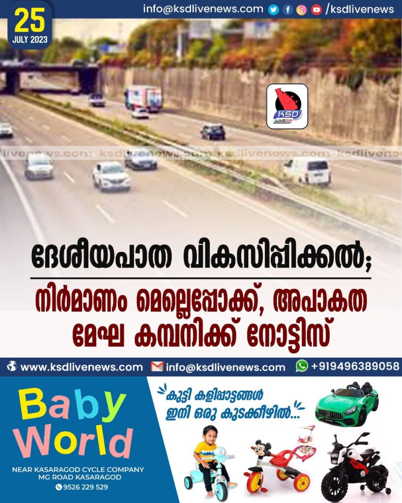 ദേശീയപാത വികസിപ്പിക്കൽ; നിർമാണം മെല്ലെപ്പോക്ക്, അപാകത, മേഘ കമ്പനിക്ക് നോട്ടിസ്