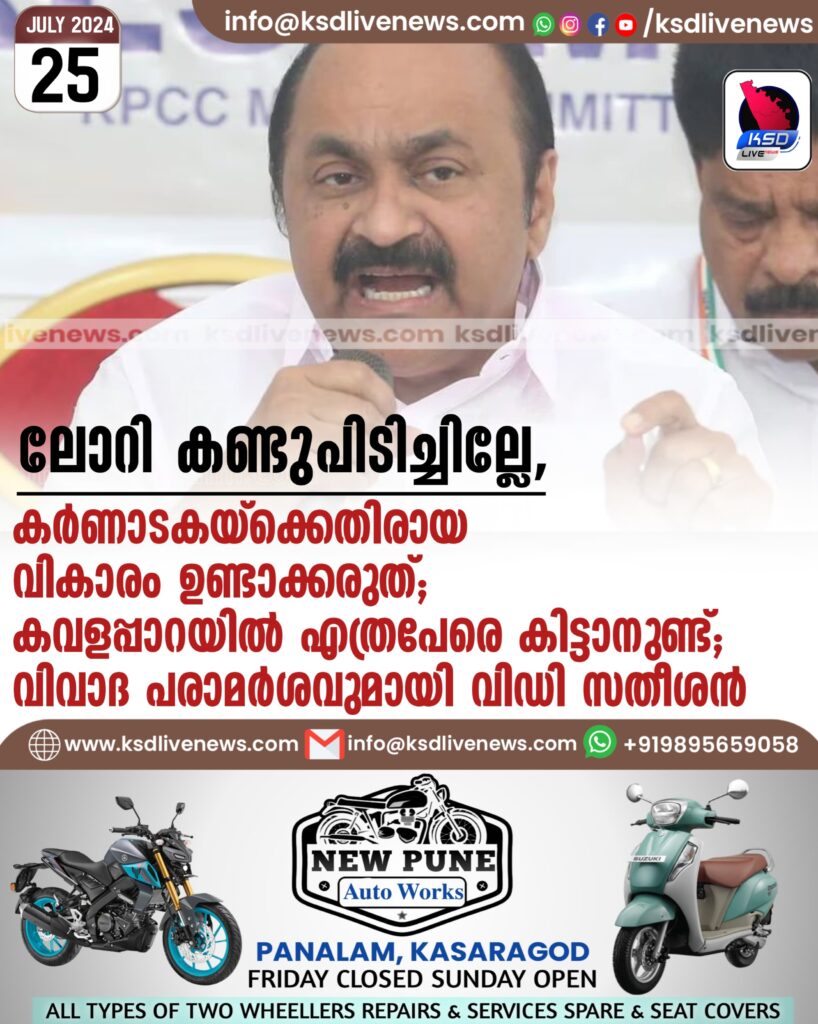 ലോറി കണ്ടുപിടിച്ചില്ലേ, കർണാടകയ്ക്കെതിരായ വികാരം ഉണ്ടാക്കരുത്; കവളപ്പാറയിൽ എത്രപേരെ കിട്ടാനുണ്ട്; വിവാദ പരാമർശവുമായി വിഡി സതീശൻ