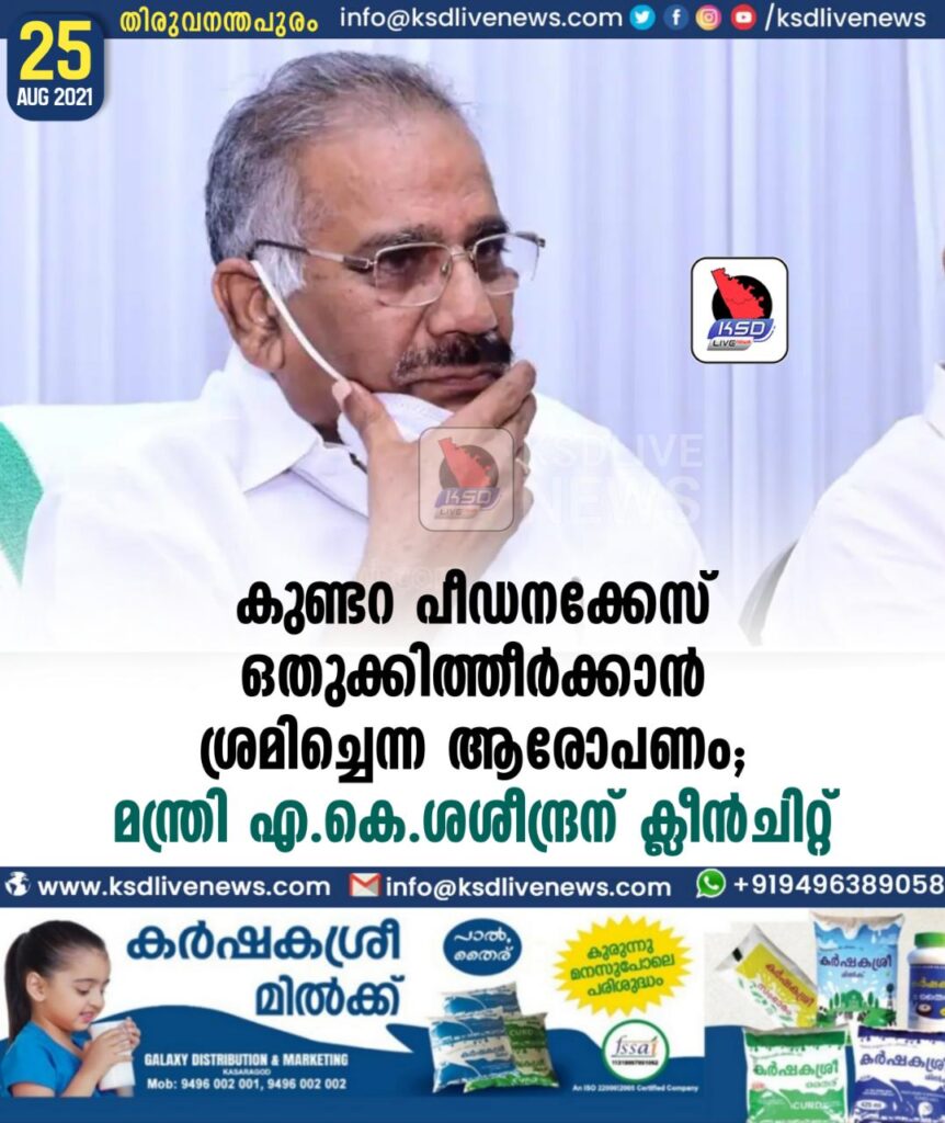 കുണ്ടറ പീഡനക്കേസ് ഒതുക്കിത്തീര്‍ക്കാന്‍ ശ്രമിച്ചെന്ന ആരോപണം; മന്ത്രി എ.കെ.ശശീന്ദ്രന് ക്ലീന്‍ചിറ്റ്