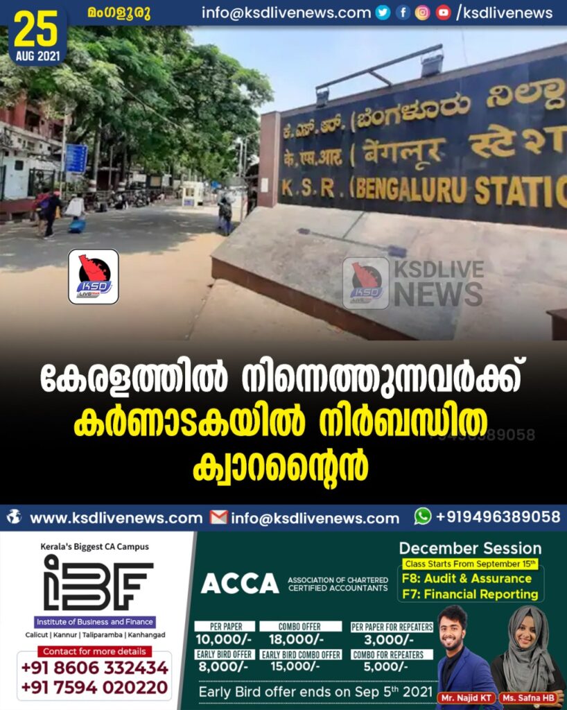 കേരളത്തിൽ നിന്നെത്തുന്നവർക്ക് കർണാടകയിൽ നിർബന്ധിത ക്വാറൻ്റൈൻ