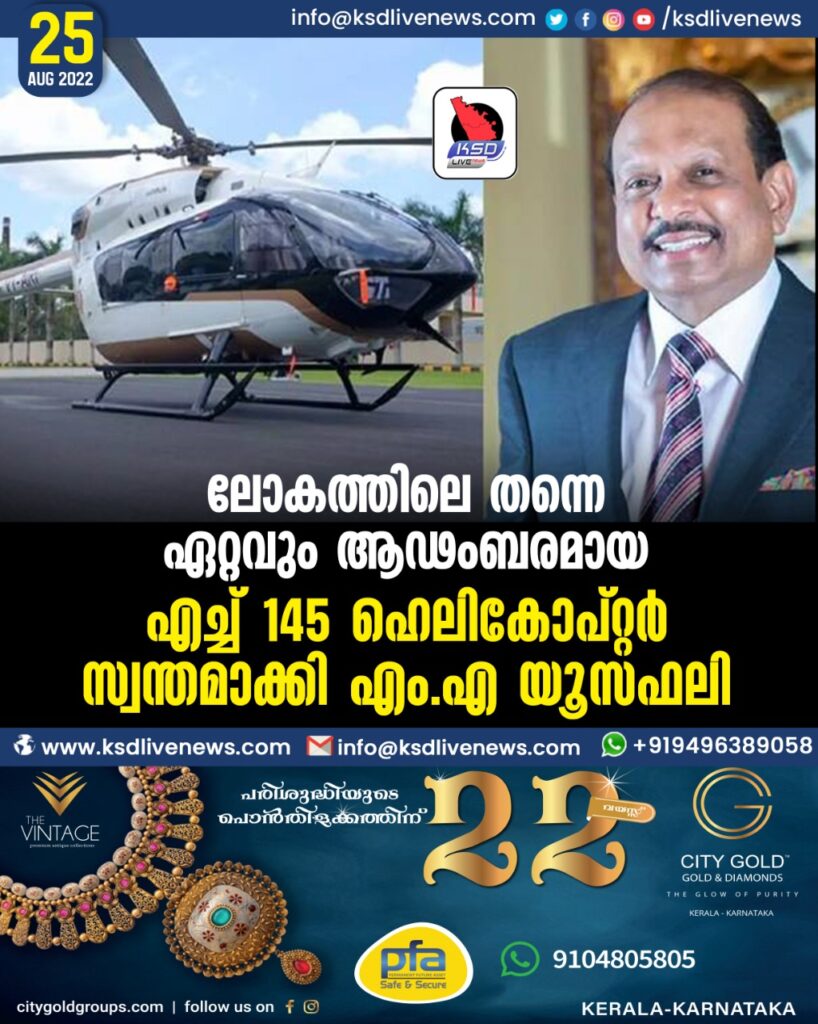ലോകത്തിലെ തന്നെ ഏറ്റവും ആഢംബരമായ എച്ച് 145 ഹെലികോപ്റ്റര് സ്വന്തമാക്കി എംഎ യൂസഫലി