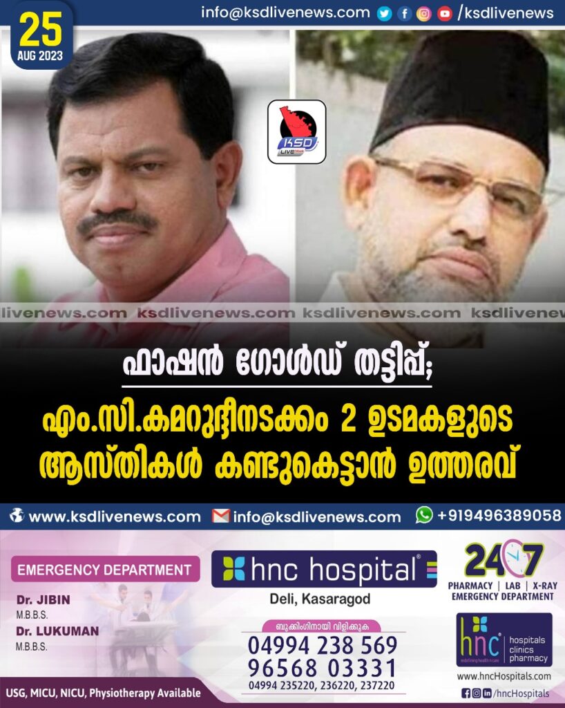 ഫാഷൻ ഗോൾഡ് തട്ടിപ്പ്; എം.സി.കമറുദ്ദീനടക്കം 2 ഉടമകളുടെ ആസ്തികൾ കണ്ടുകെട്ടാൻ ഉത്തരവ്