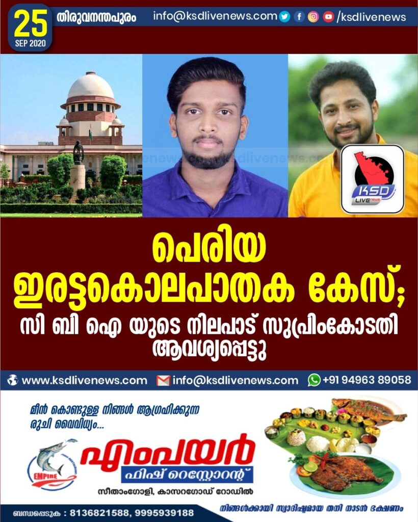 പെരിയ ഇരട്ടകൊലപാതക കേസ് ; സി ബി ഐ യുടെ നിലപാട് സുപ്രിംകോടതി ആവശ്യപ്പെട്ടു