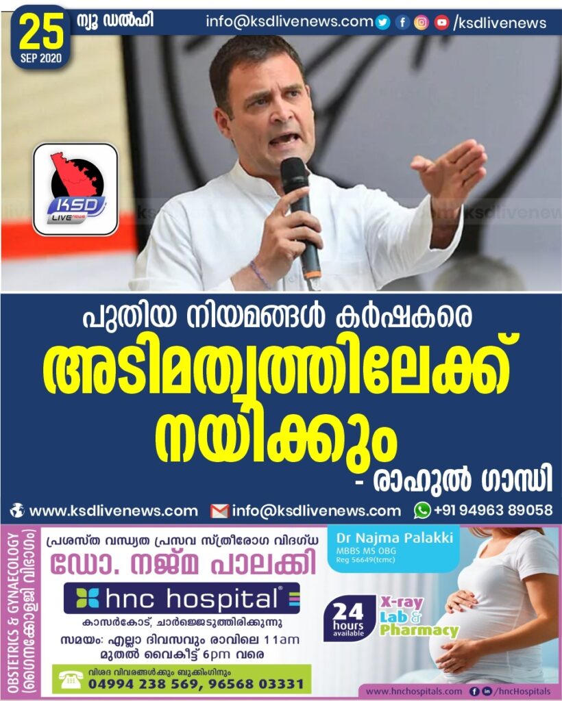 പുതിയ നിയമങ്ങൾ കർഷകരെ അടിമത്വത്തിലേക്ക് നയിക്കും – രാഹുൽ ഗാന്ധി