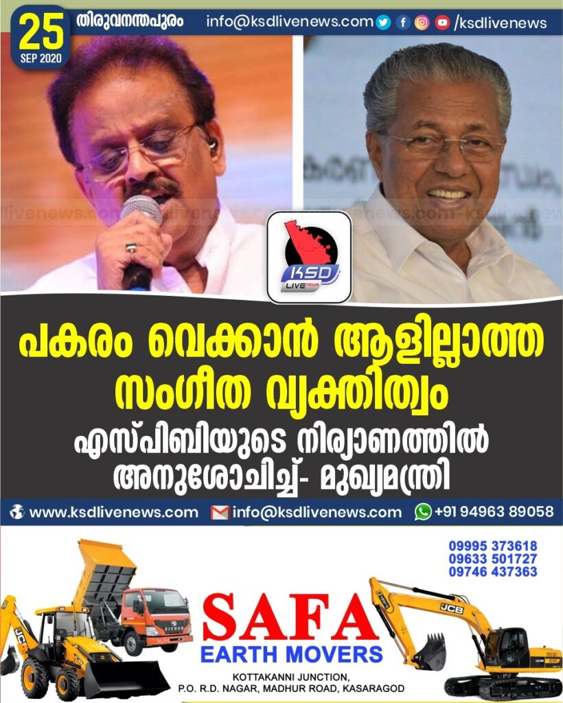 ‘പകരം വെക്കാന് ആളില്ലാത്ത സംഗീത വ്യക്തിത്വം’; എസ്പിബിയുടെ നിര്യാണത്തിൽ അനുശോചിച്ച് – മുഖ്യമന്ത്രി