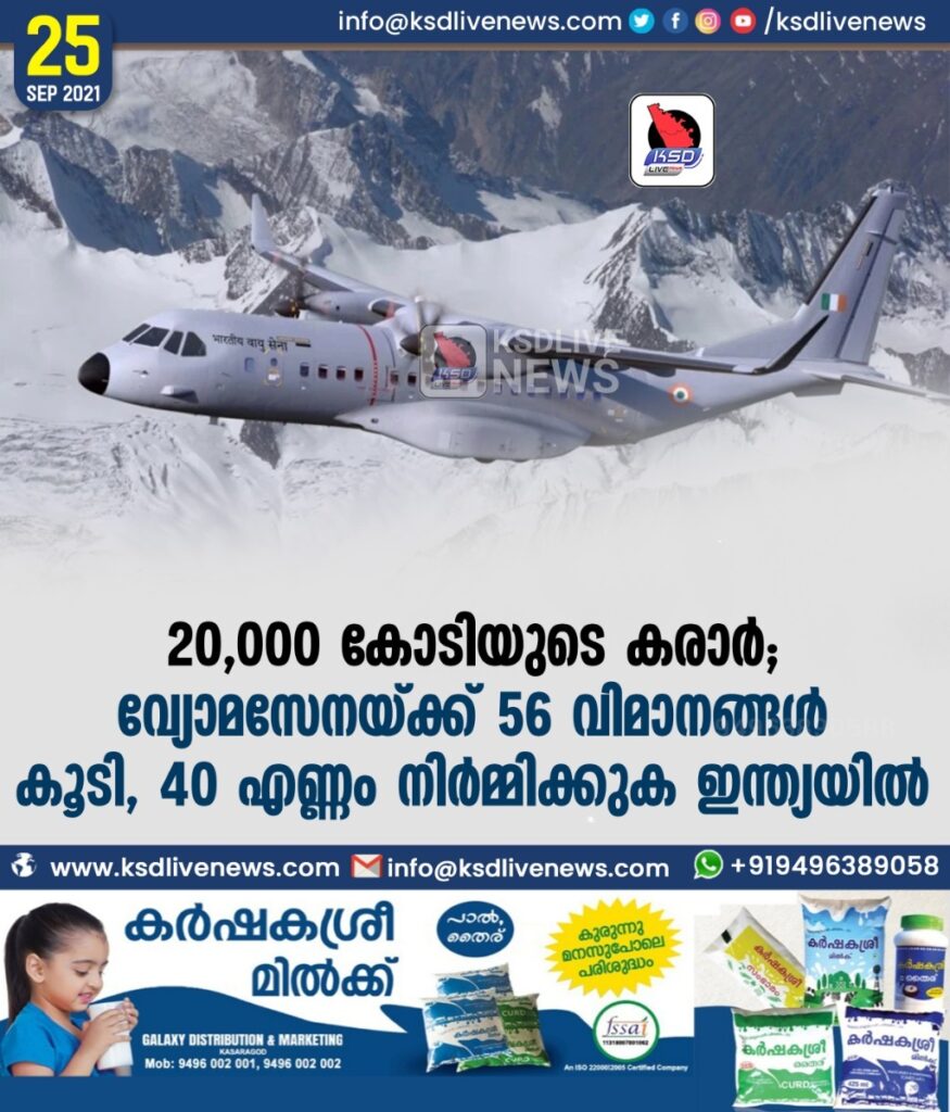 20,000 കോടിയുടെ കരാര്: വ്യോമസേനയ്ക്ക് 56 വിമാനങ്ങള് കൂടി, 40 എണ്ണം നിര്മ്മിക്കുക ഇന്ത്യയില്