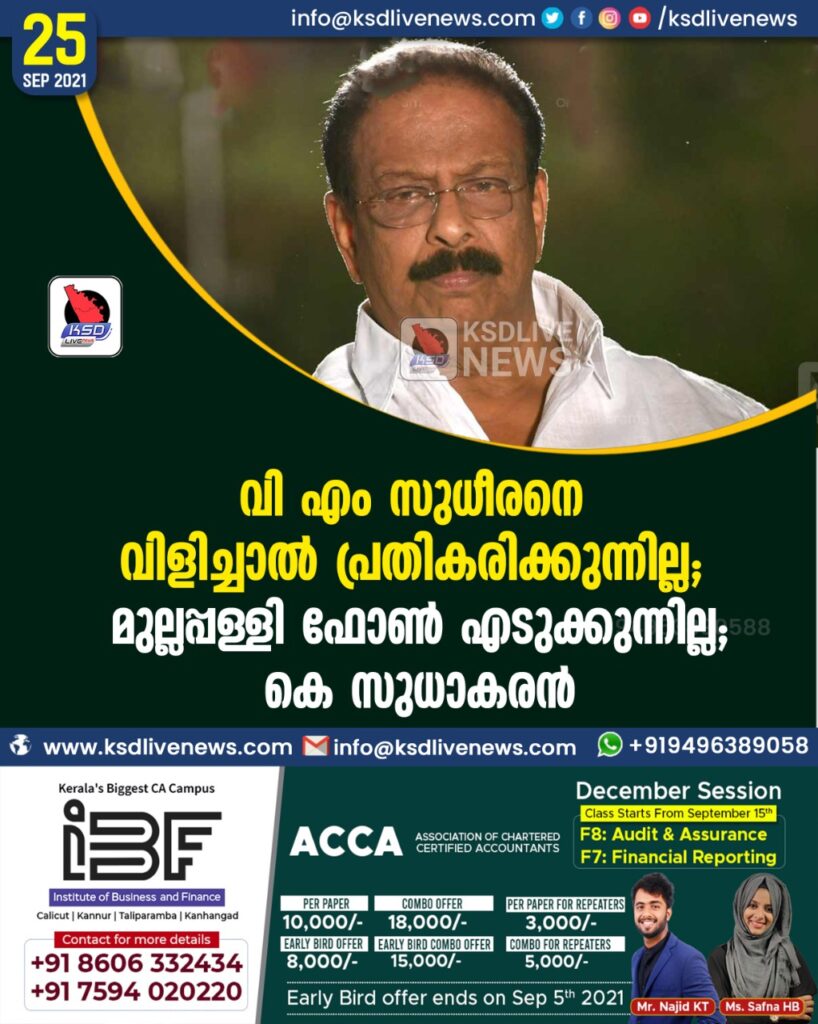 വി എം സുധീരനെ വിളിച്ചാൽ പ്രതികരിക്കുന്നില്ല; മുല്ലപ്പള്ളി ഫോൺ എടുക്കുന്നില്ല: കെ സുധാകരൻ