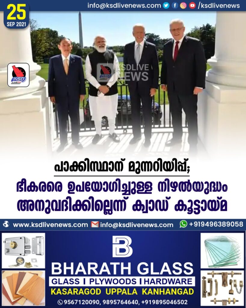 പാക്കിസ്ഥാന് മുന്നറിയിപ്പ്: ഭീകരരെ ഉപയോഗിച്ചുള്ള നിഴൽയുദ്ധം അനുവദിക്കില്ലെന്ന് ക്വാഡ് കൂട്ടായ്മ