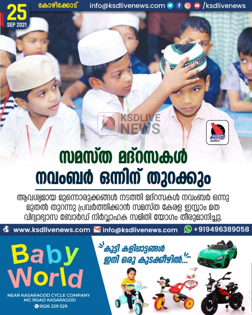 സമസ്ത മദ്റസകള് നവംബര് ഒന്നിന് തുറക്കും