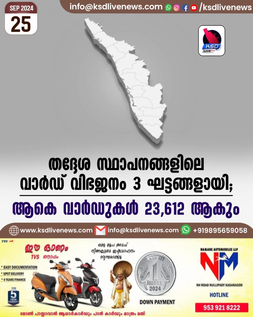 തദ്ദേശ സ്ഥാപനങ്ങളിലെ വാർഡ് വിഭജനം 3 ഘട്ടങ്ങളായി; ആകെ വാർഡുകൾ 23,612 ആകും