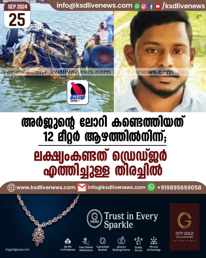 അർജുന്റെ ലോറി കണ്ടെത്തിയത് 12 മീറ്റർ ആഴത്തിൽനിന്ന്; ലക്ഷ്യംകണ്ടത് ഡ്രെഡ്ജർ എത്തിച്ചുള്ള തിരച്ചിൽ