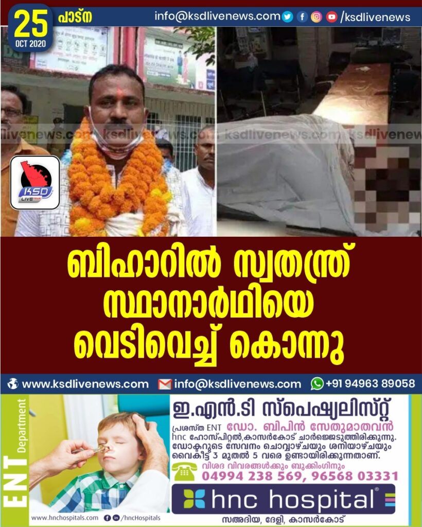 ബിഹാറിൽ സ്വതന്ത്ര സ്ഥാനാർഥിയെ വെടിവെച്ച് കൊന്നു .