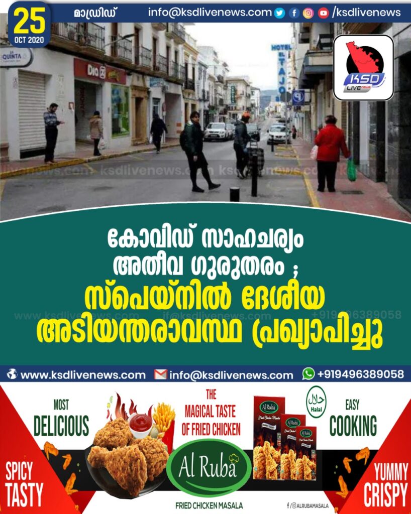 കോവിഡ് സാഹചര്യം അതീവ ഗുരുതരം ; സ്പെയ്നിൽ ദേശീയ അടിയന്തരാവസ്ഥ പ്രഖ്യാപിച്ചു