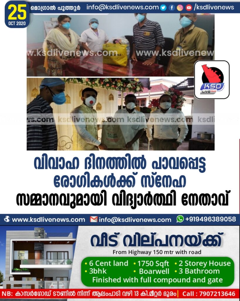 വിവാഹ ദിനത്തിൽ പാവപ്പെട്ട രോഗികൾക്ക് സ്നേഹ സമ്മാനവുമായി വിദ്യാർത്ഥി നേതാവ്
