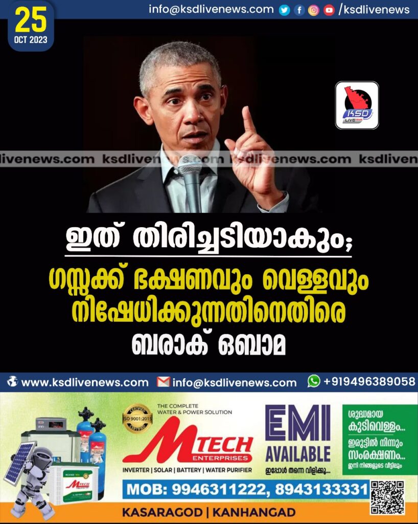 ഇത് തിരിച്ചടിയാകും; ഗസ്സക്ക് ഭക്ഷണവും വെള്ളവും നിഷേധിക്കുന്നതിനെതിരെ ബരാക് ഒബാമ