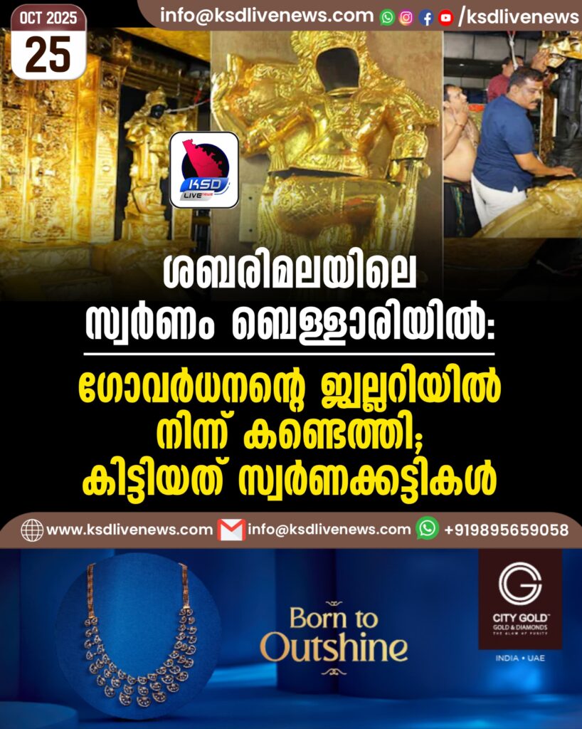 ശബരിമലയിലെ സ്വർണം ബെള്ളാരിയിൽ; ഗോവർധനന്റെ ജ്വല്ലറിയിൽ നിന്ന് കണ്ടെത്തി, കിട്ടിയത് സ്വർണക്കട്ടികൾ