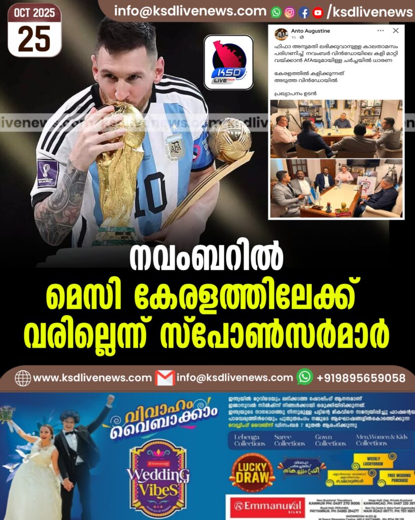നവംബറില് മെസി കേരളത്തിലേക്ക് വരില്ലെന്ന് സ്പോണ്സര്മാര്
