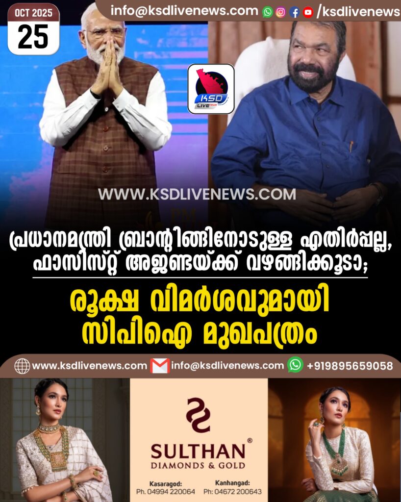 പ്രധാനമന്ത്രി’ ബ്രാന്റിങ്ങിനോടുള്ള എതിര്പ്പല്ല, ഫാസിസ്റ്റ് അജണ്ടയ്ക്ക് വഴങ്ങിക്കൂടാ; രൂക്ഷ വിമര്ശവുമായി സിപിഐ മുഖപത്രം