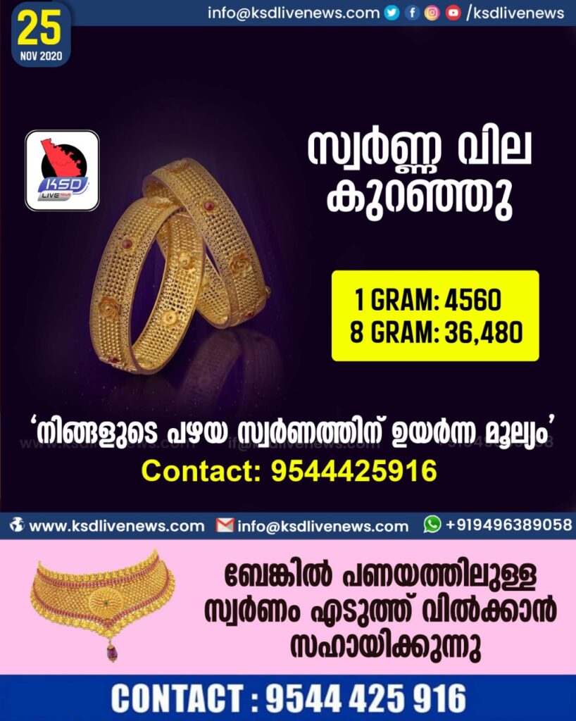 വീണ്ടും ഇടിവ്: സ്വര്ണവില പവന് 480 രൂപ കുറഞ്ഞ് 36,480 രൂപയായി